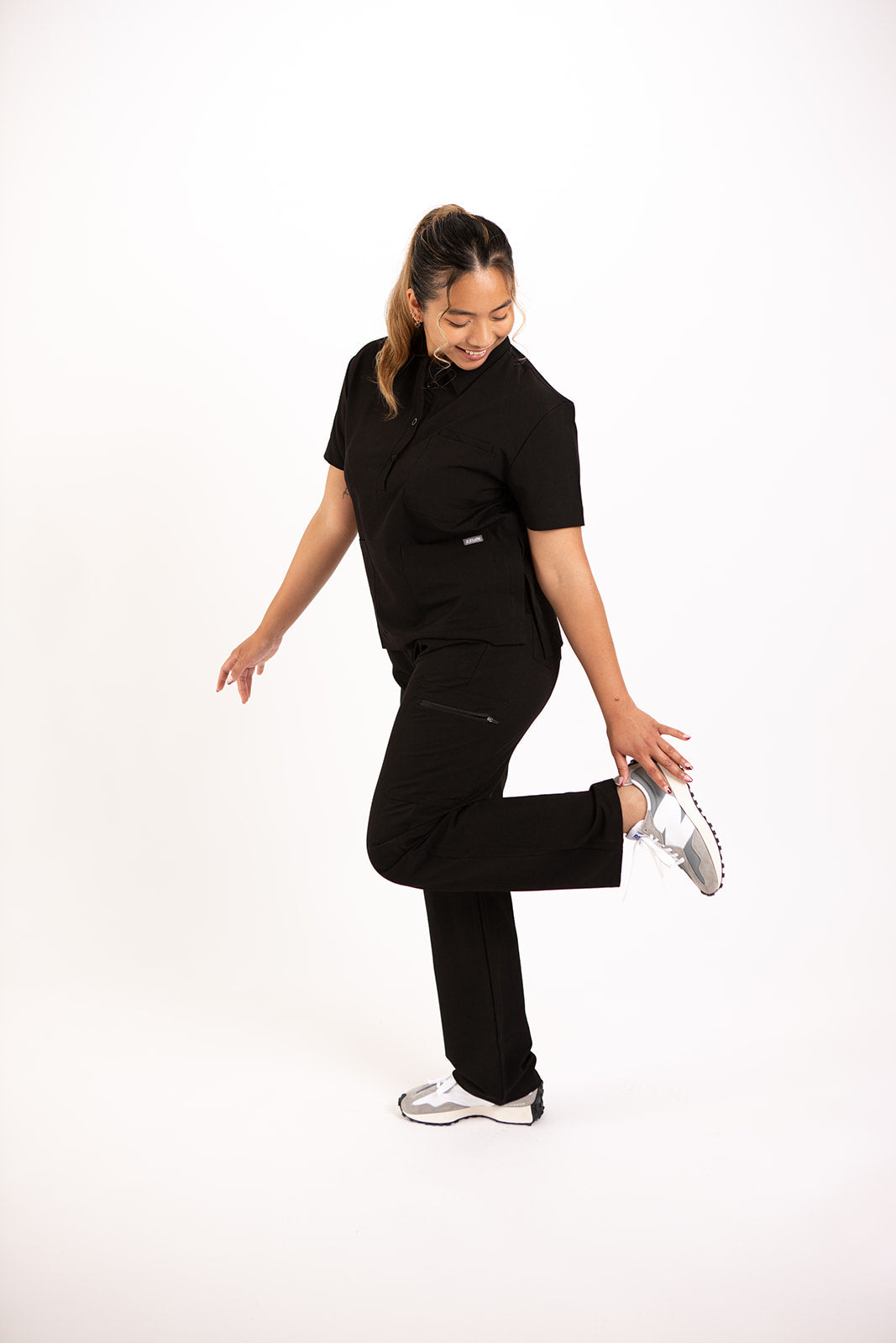 Optimized performance. This classic high waisted cargo scrub pant is designed with a modern straight-leg silhouette. We have combined modern design details with soft, stretch performance fabric with plenty of pockets for all your safekeeping and multi-tasking.