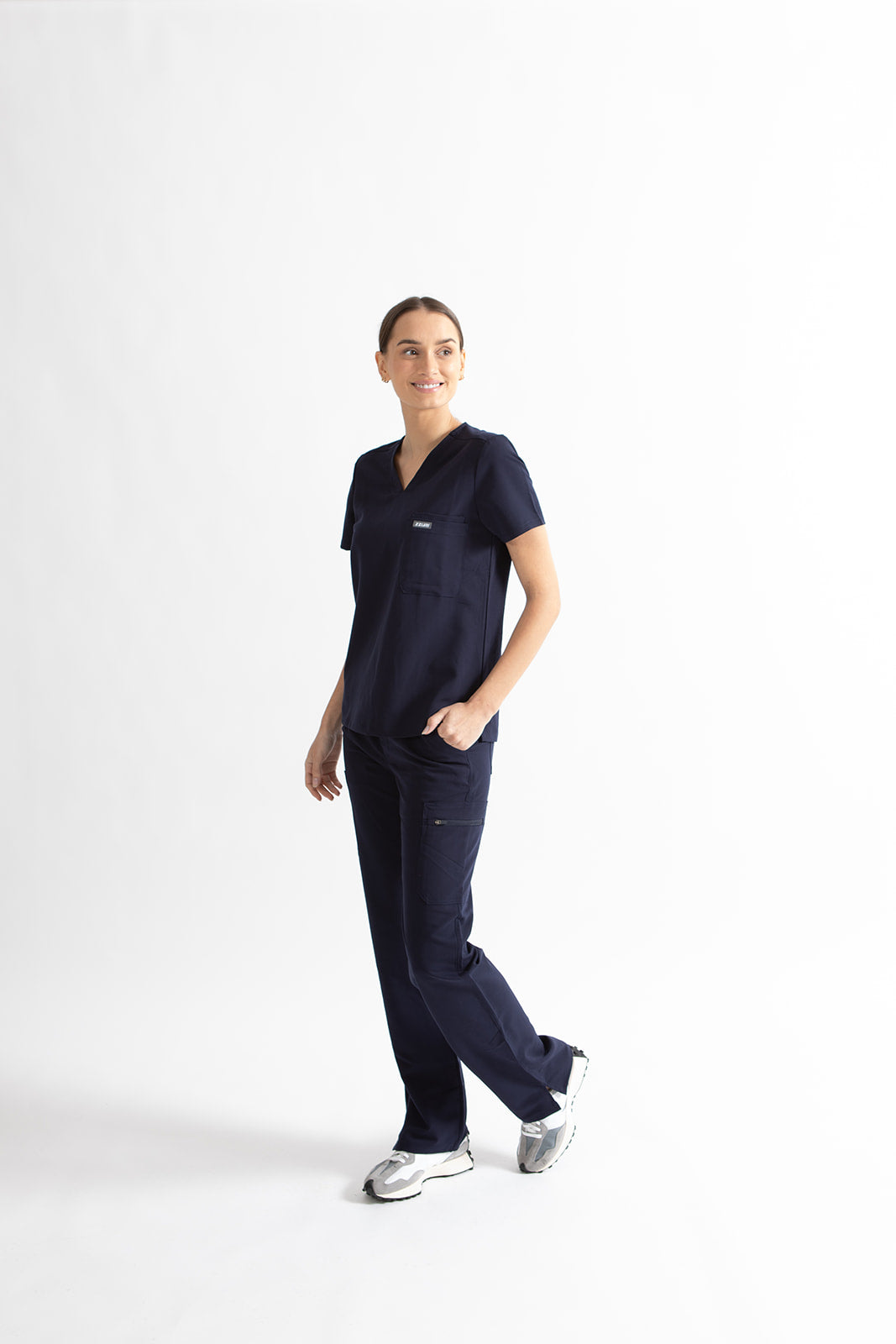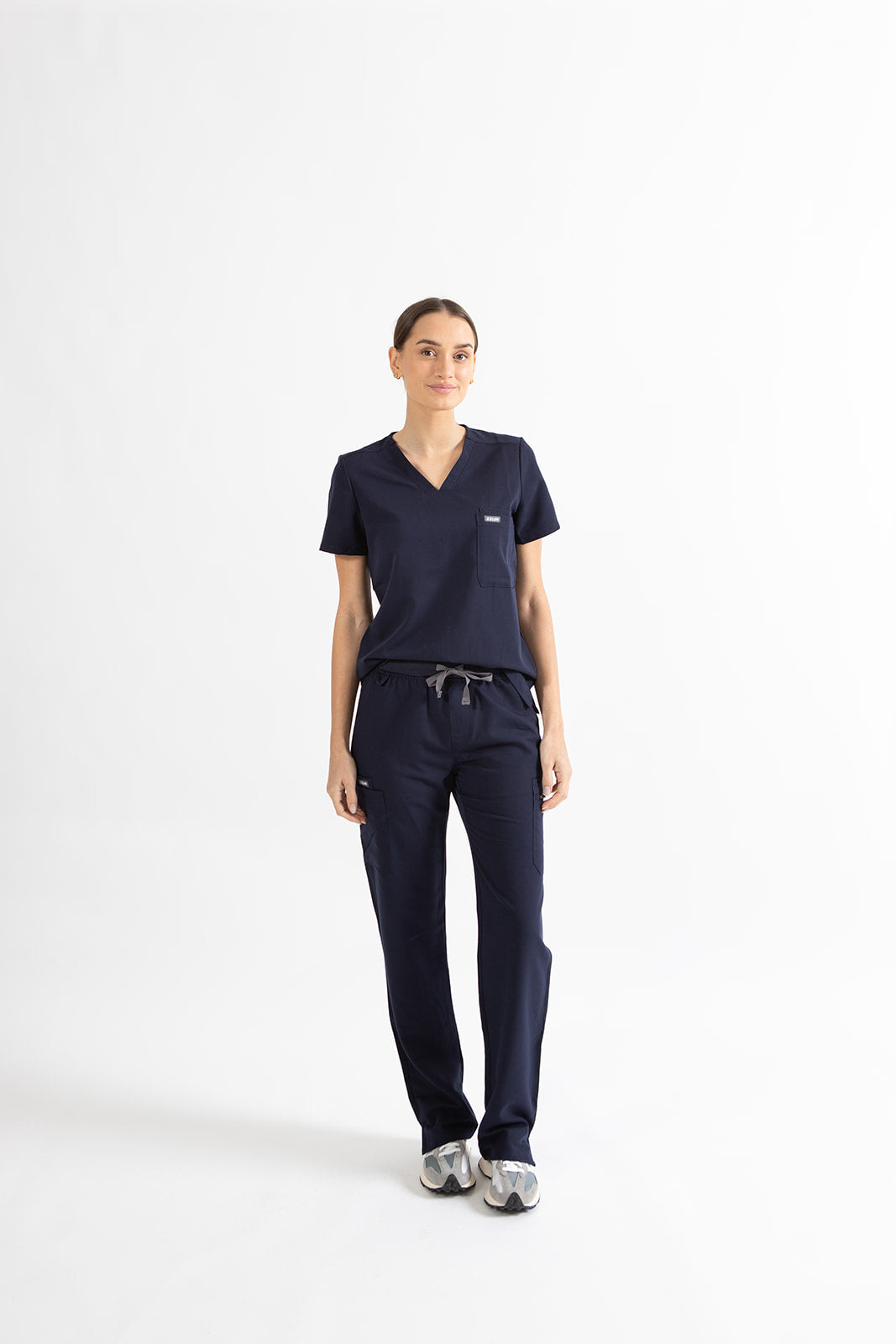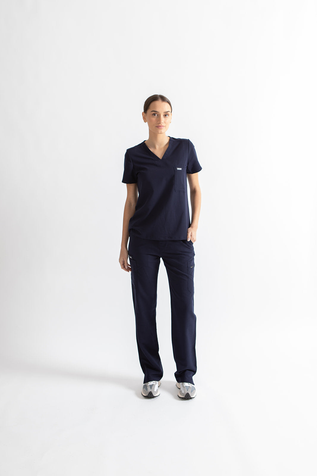 Colour options pair best with the Super-Soft Three Pocket Scrub Top (Navy)