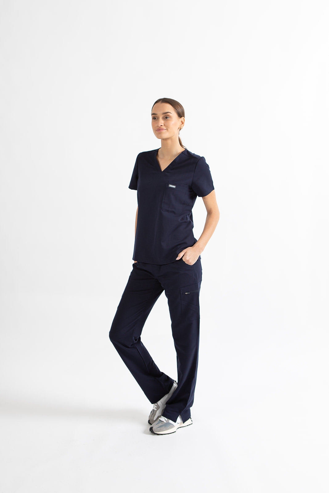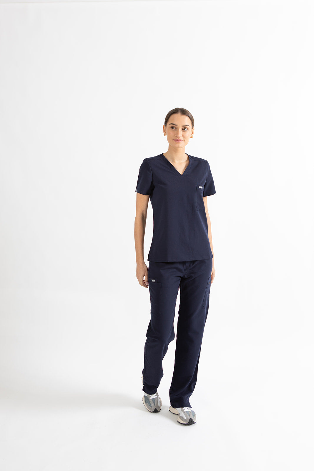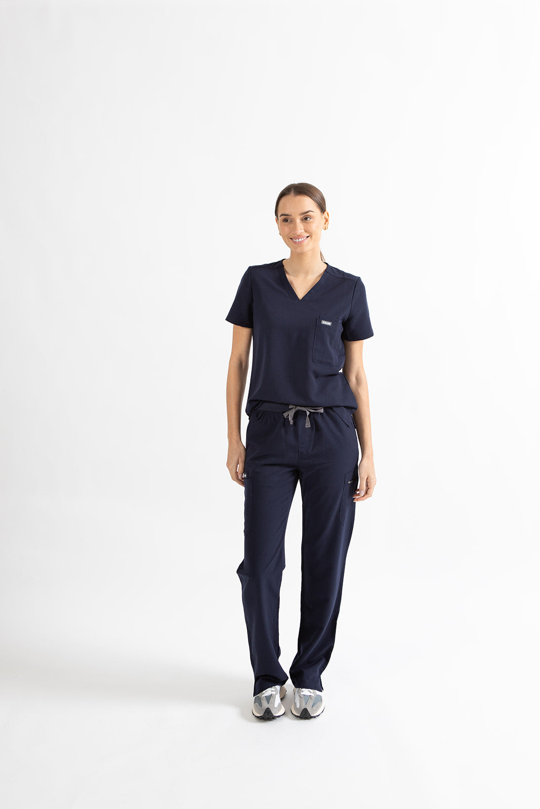 Colour options pair best with the Super-Soft Three Pocket Scrub Top (Navy)