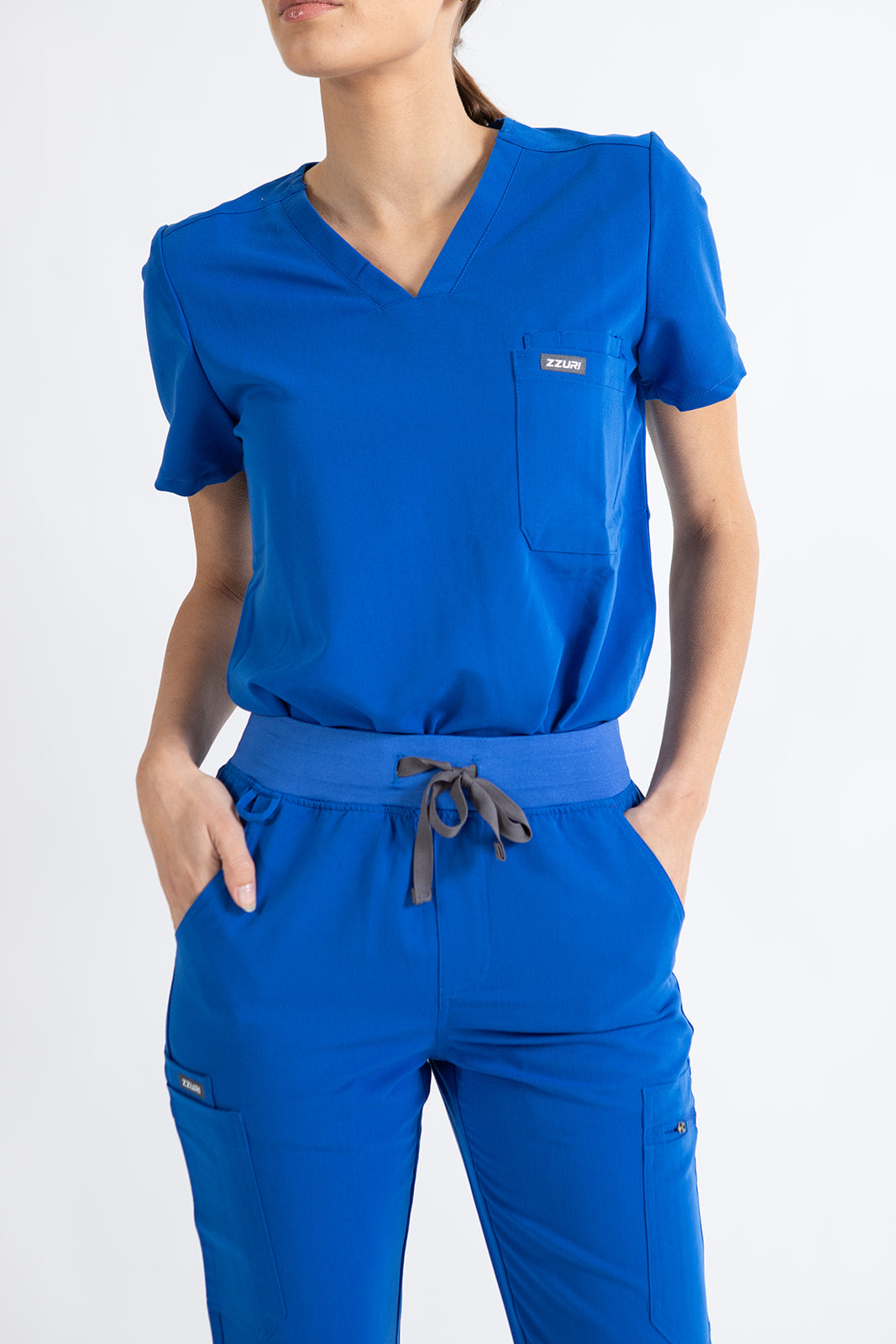 SUPER-SOFT CHEST-POCKETS WOMEN'S SCRUB TOP (ROYAL BLUE)