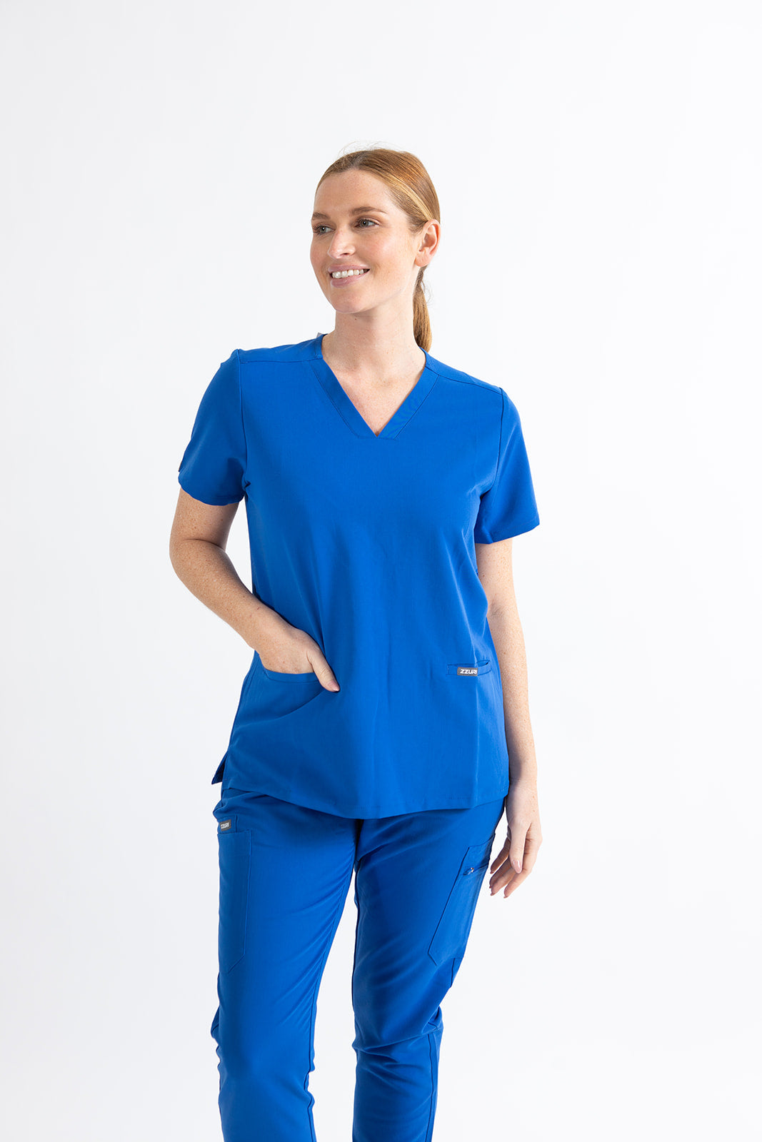 SUPER-SOFT THREE POCKET WOMEN'S SCRUB TOP (ROYAL BLUE)
