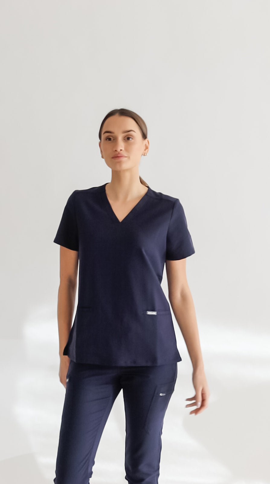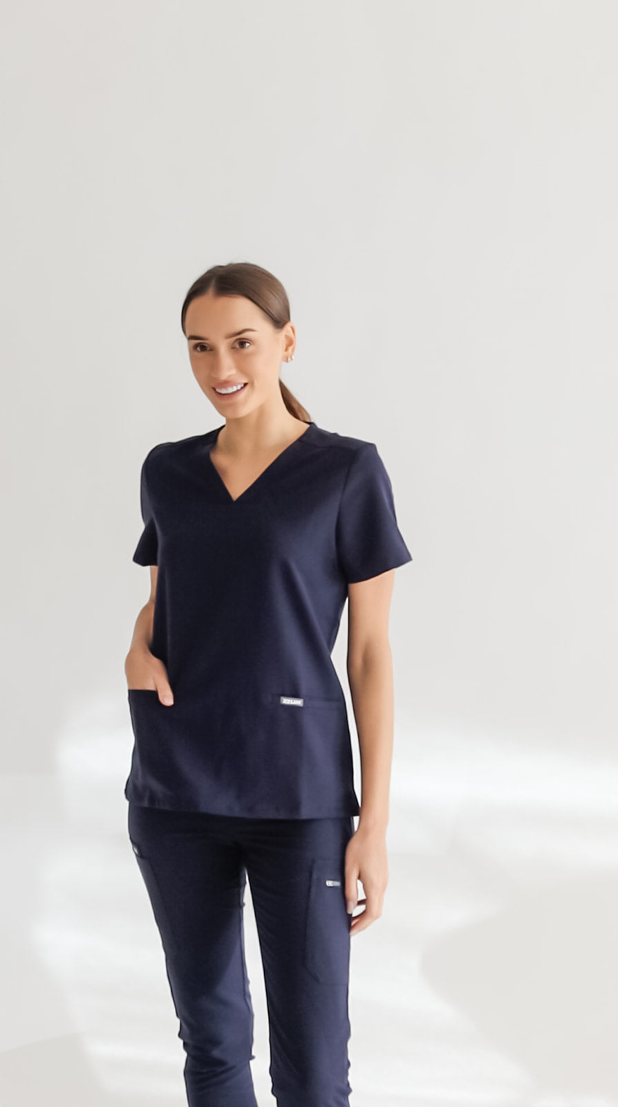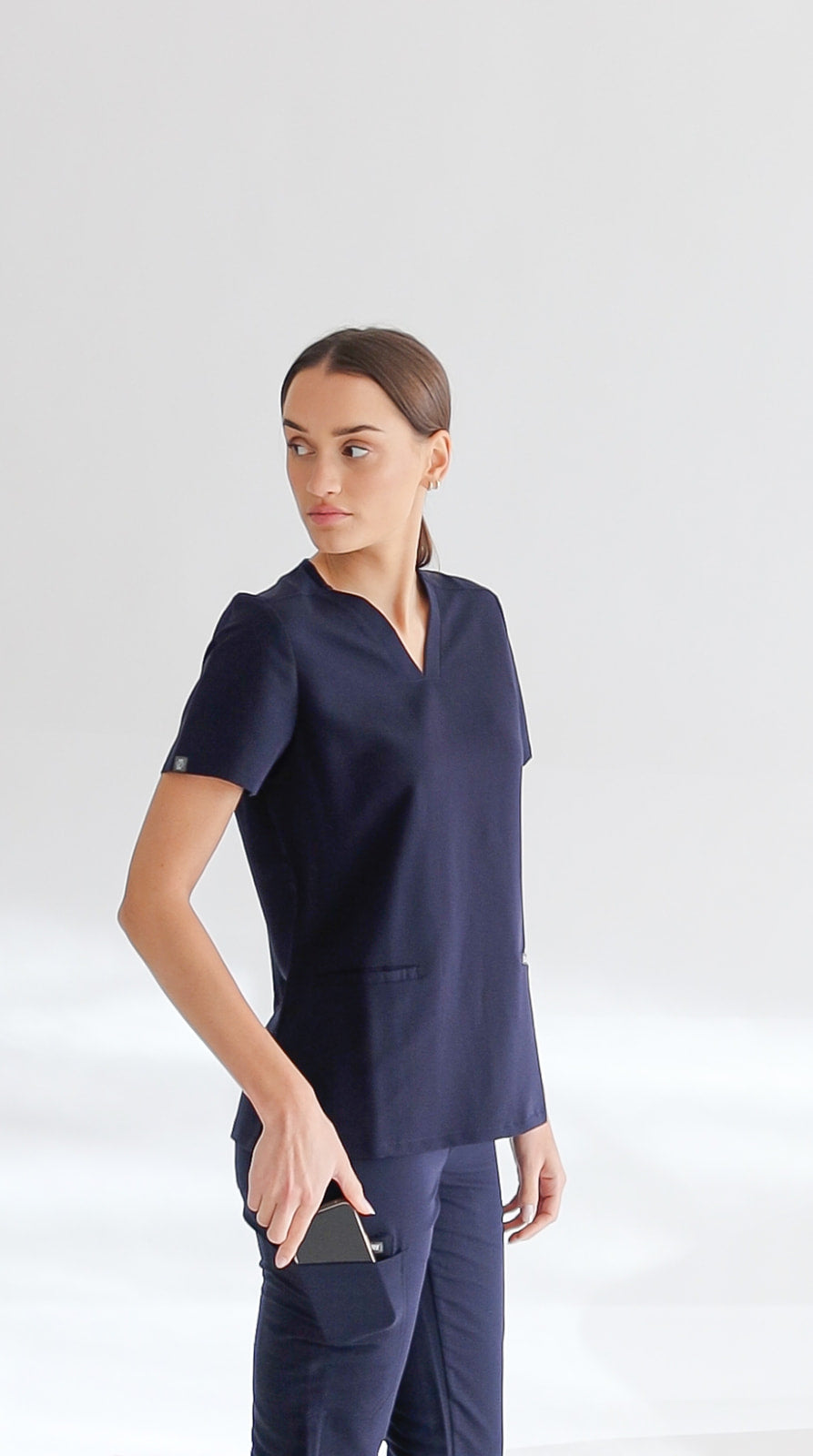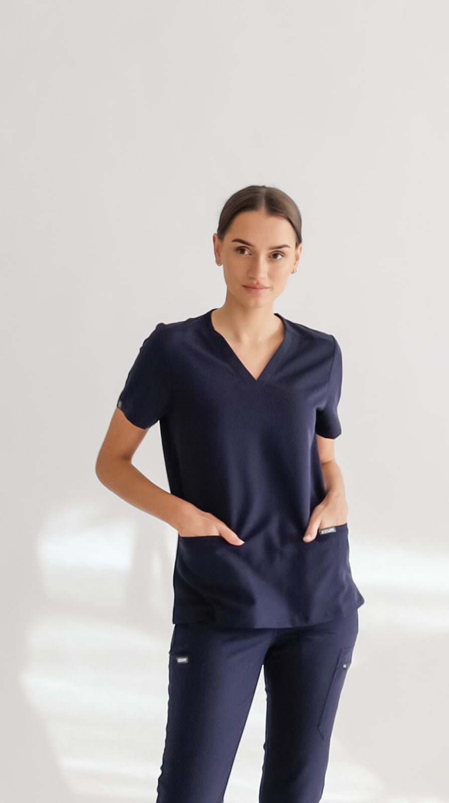 SUPER-SOFT THREE POCKET WOMEN'S SCRUB TOP (NAVY)