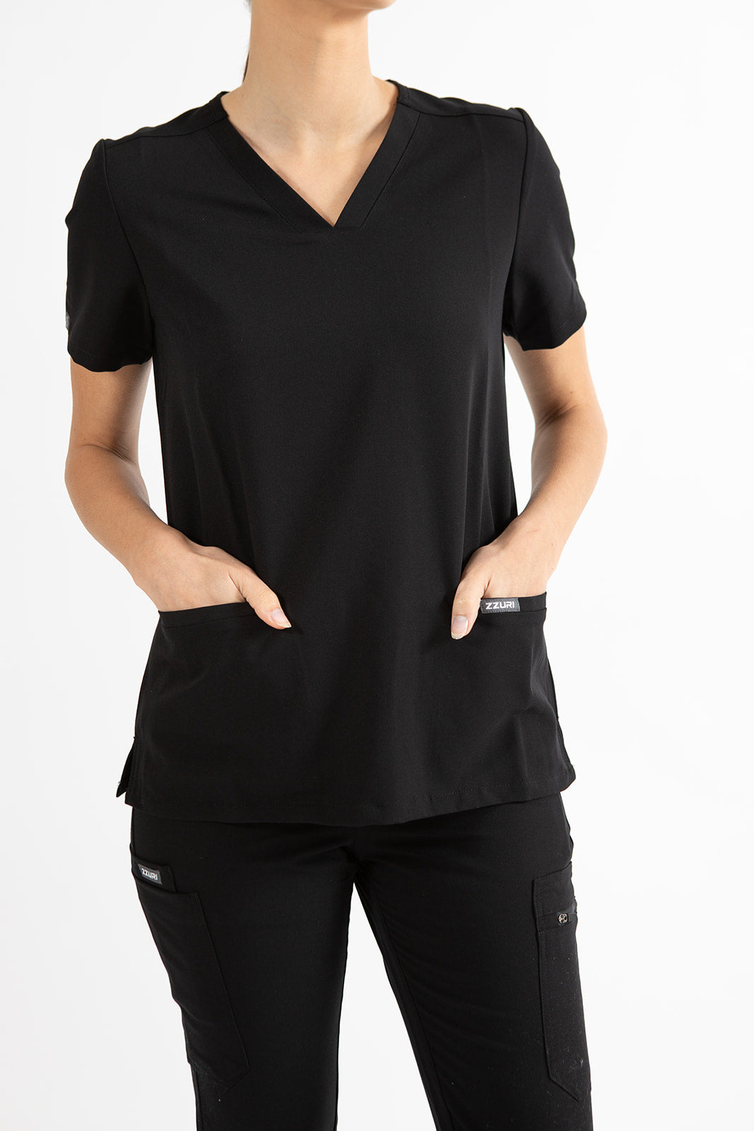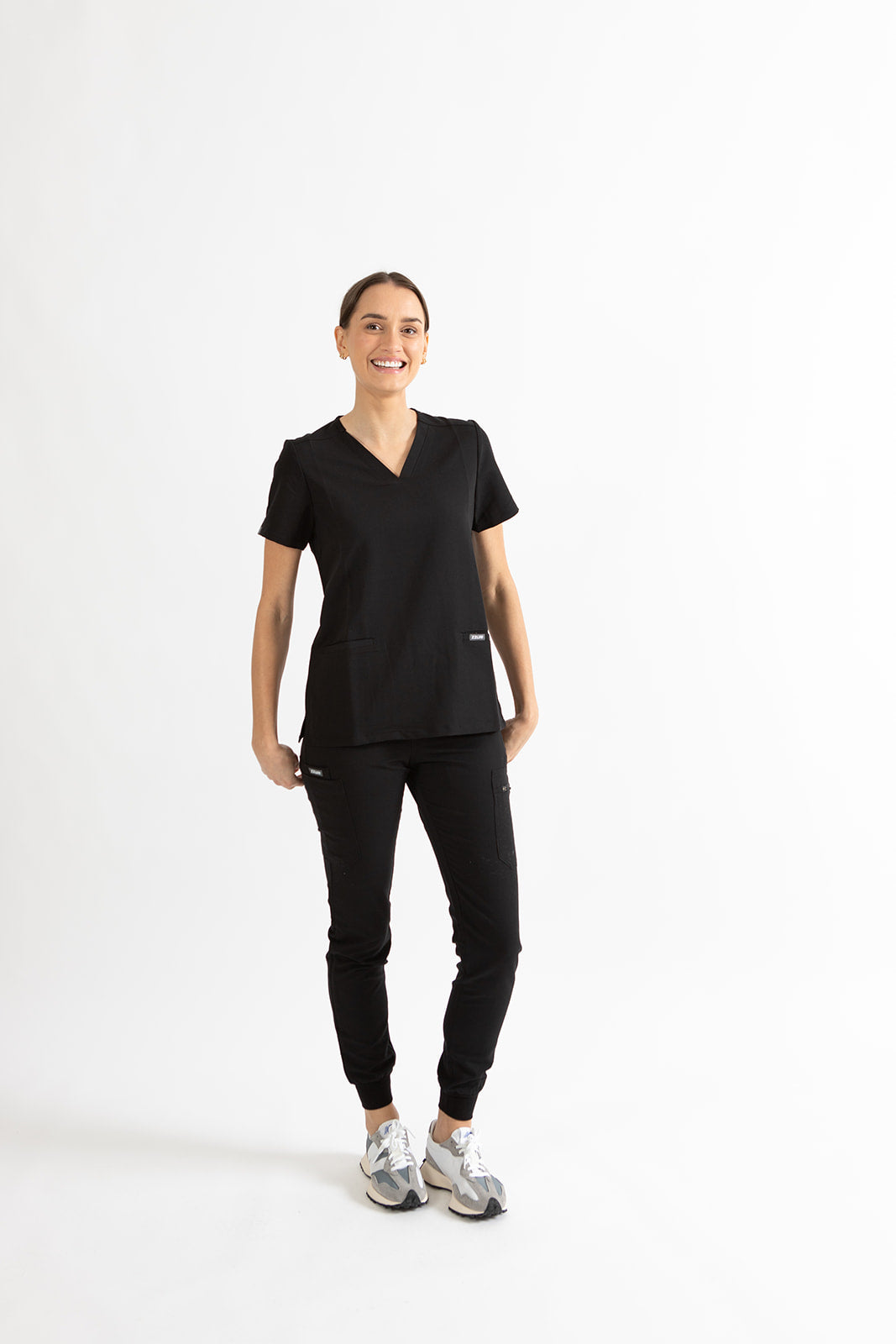 Colour options pair best with the Super-Soft Three Pocket Women's Scrub Top (Black)