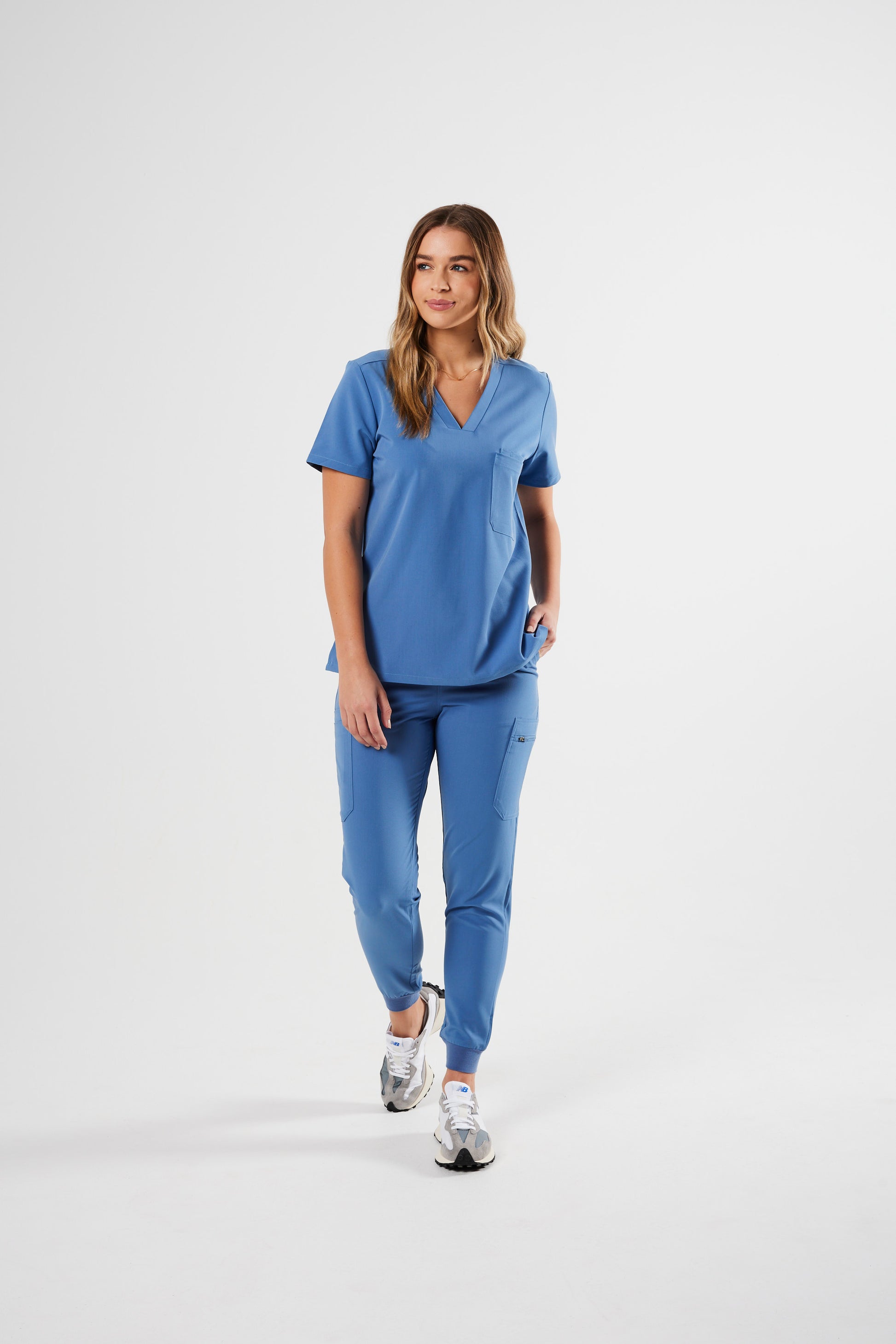 CLASSIC HIGH WAISTED JOGGER WOMEN'S SCRUB PANTS (CEIL BLUE)