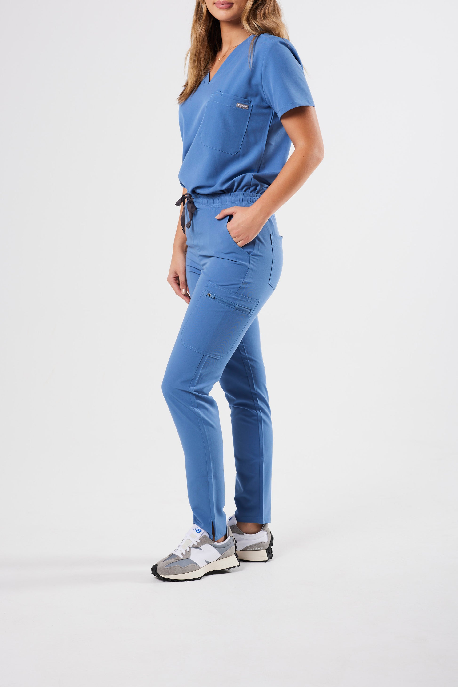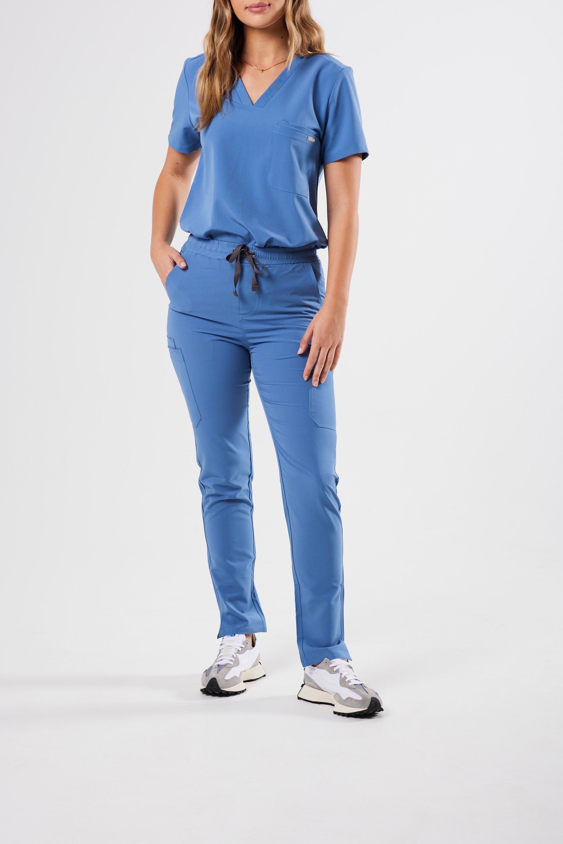 CLASSIC HIGH WAISTED SKINNY STRAIGHT LEG WOMEN'S SCRUB PANTS (CEIL BLUE)