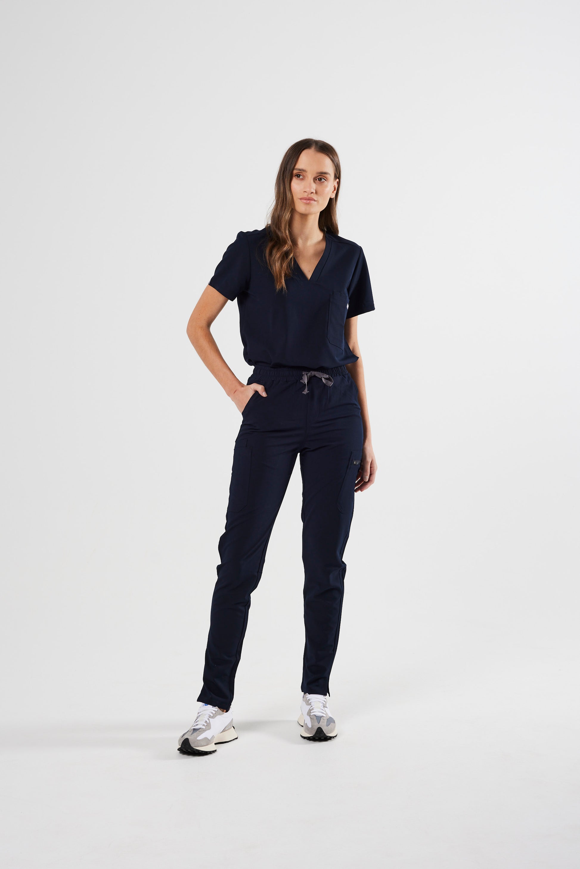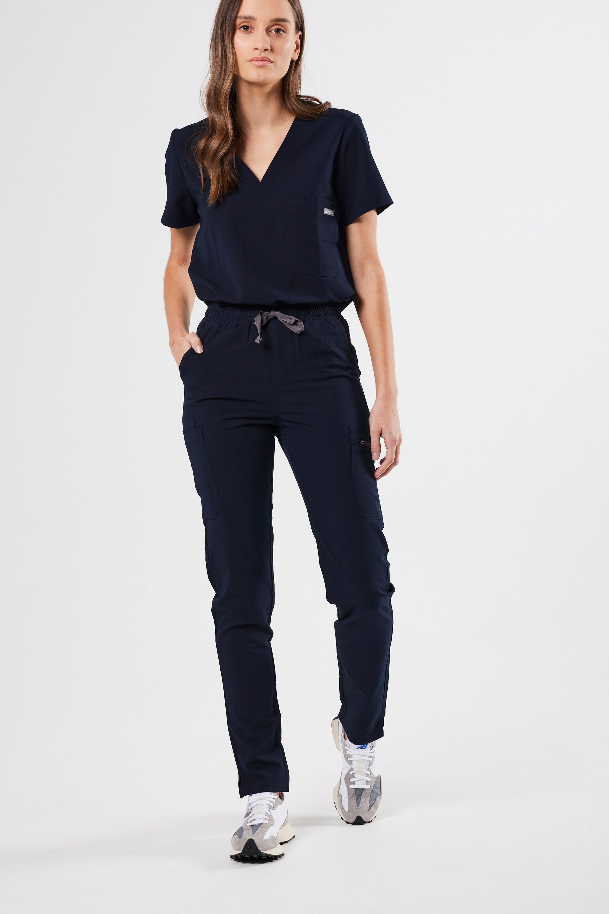 Business meets comfort. Polished and essential with compartments for all things you need, this slimming scrub pant is designed to handle 24-hour shifts.