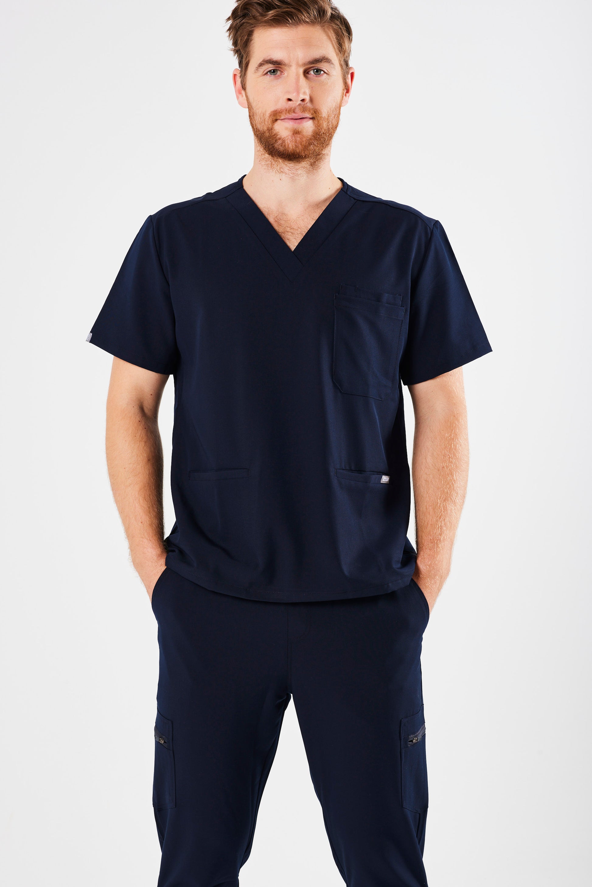 CLASSIC THREE-POCKET MEN'S SCRUB TOP (NAVY)
