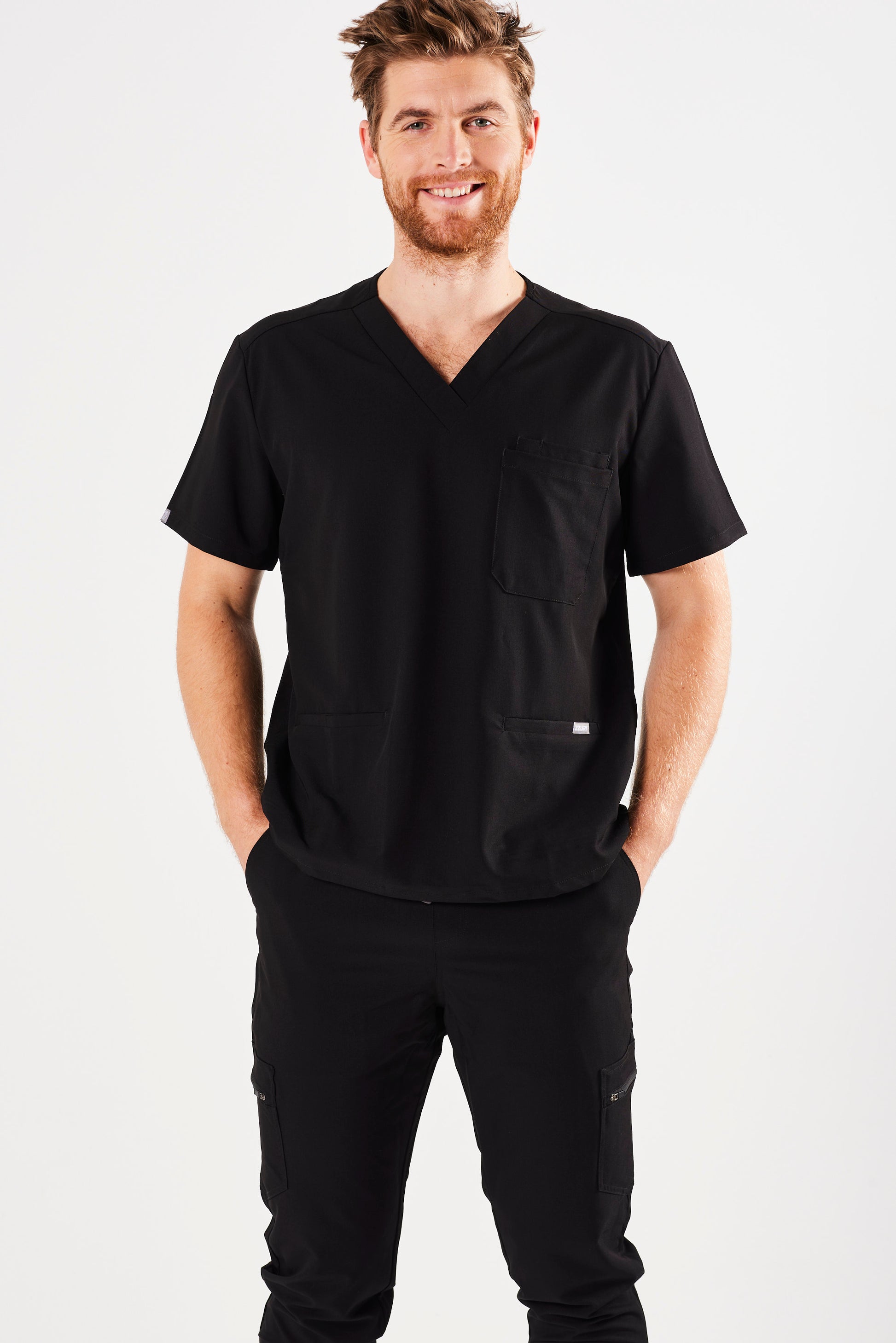 CLASSIC THREE-POCKET MEN'S SCRUB TOP (BLACK)