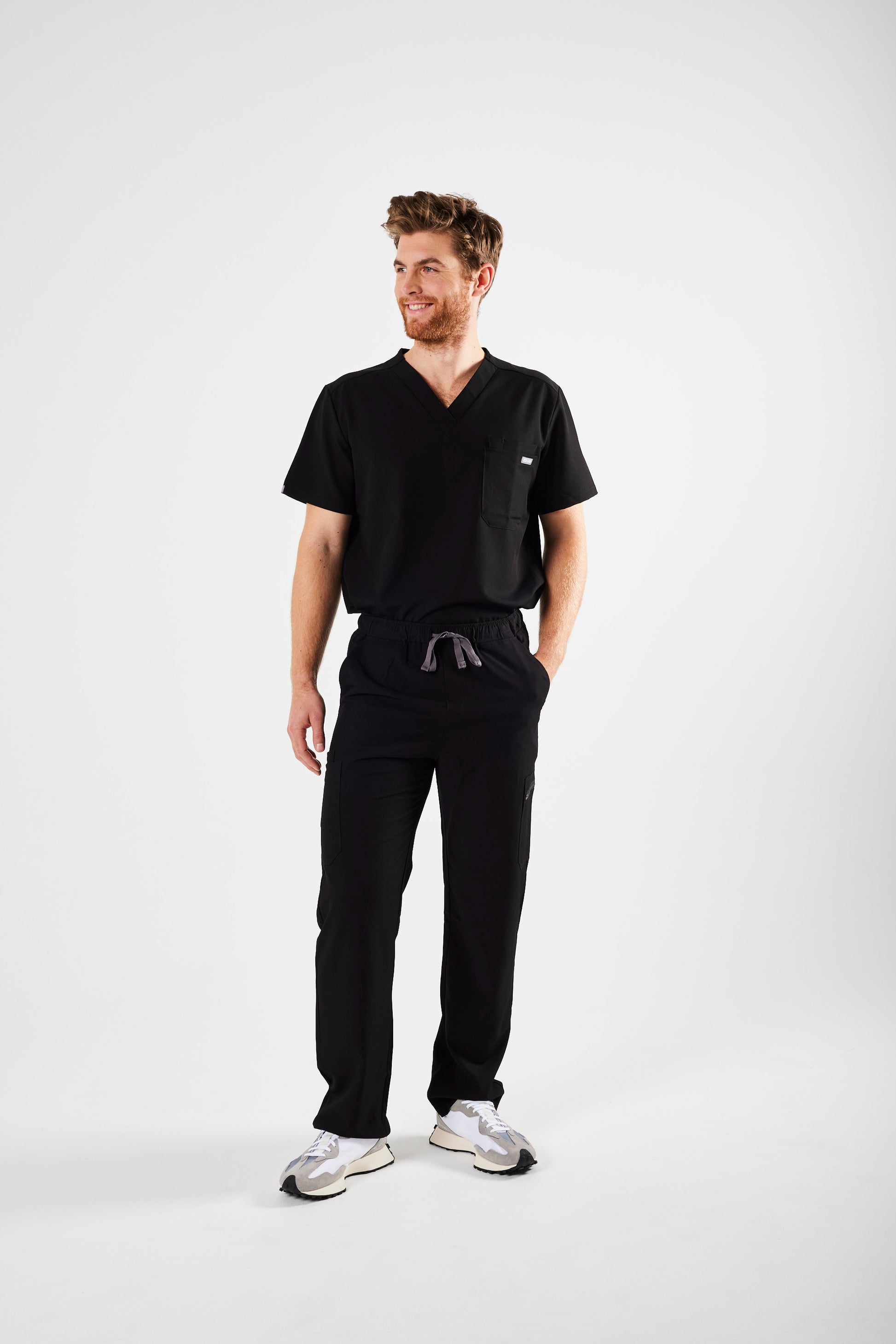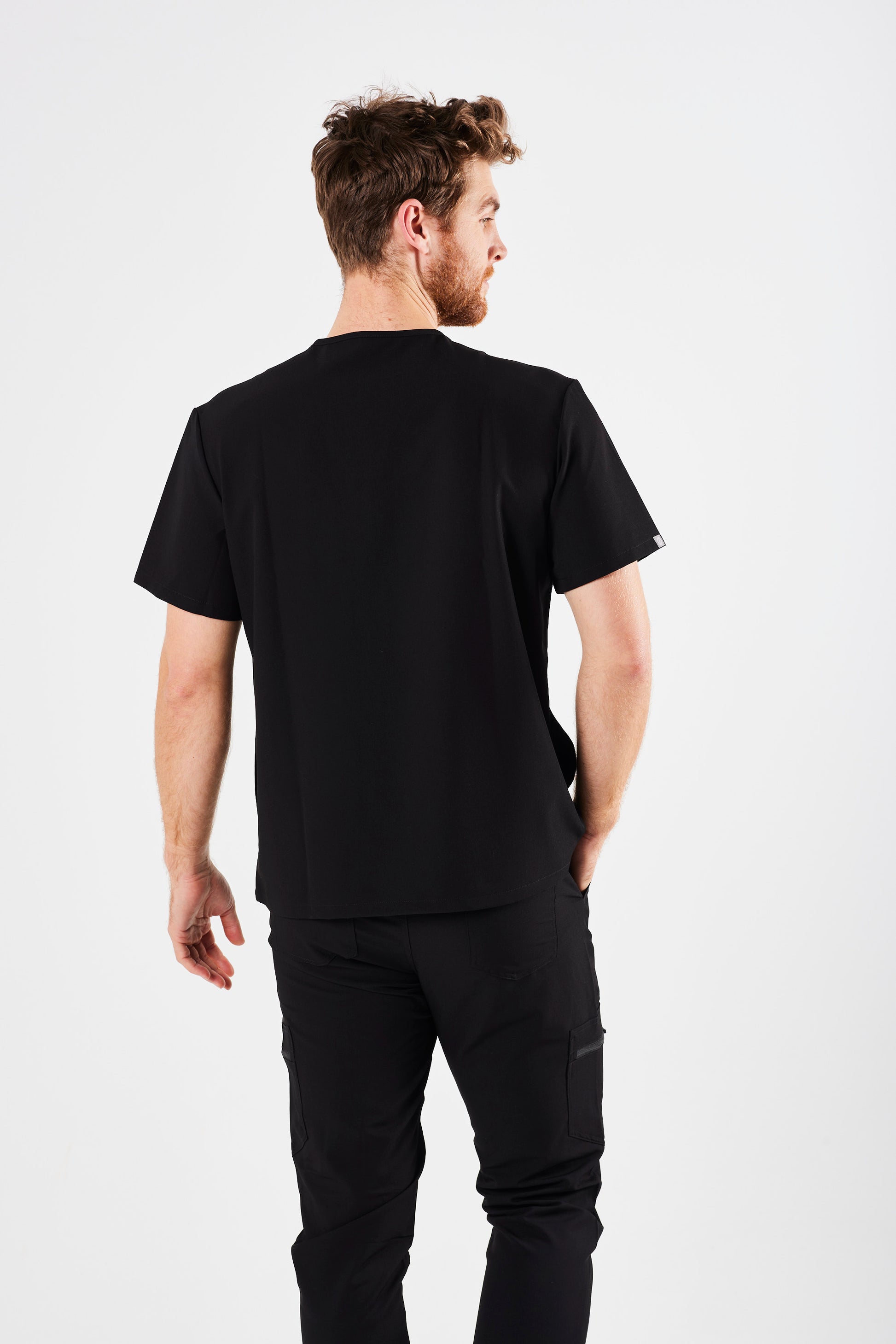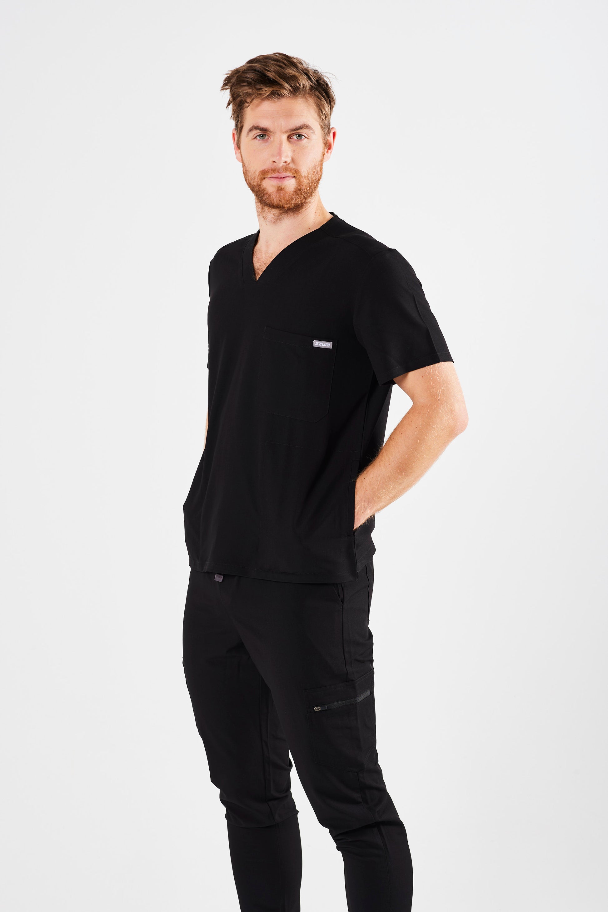 CLASSIC V-NECK WITH SIDE POCKETS MEN'S SCRUB TOP (BLACK)