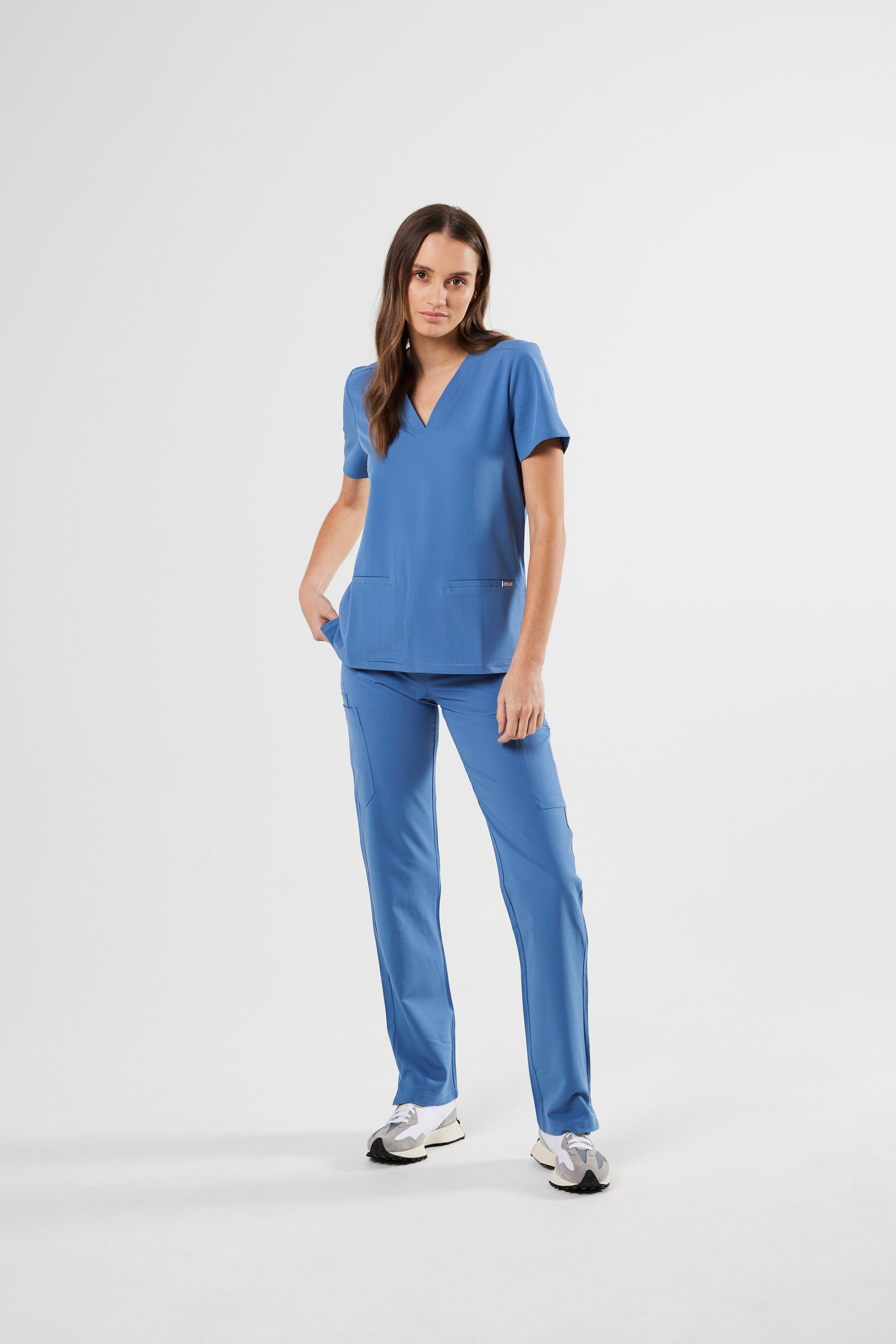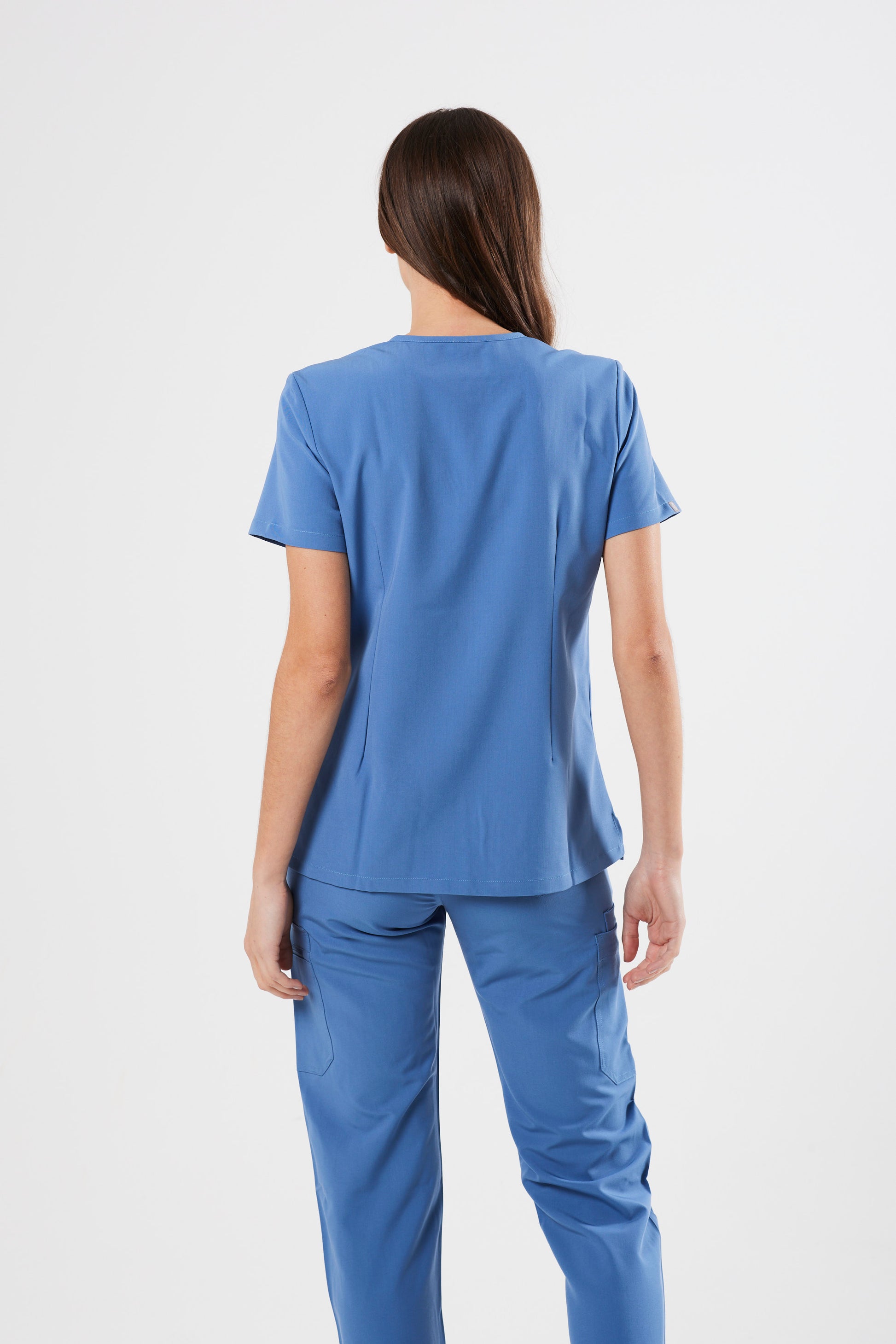 CLASSIC TWO-POCKET WOMEN'S SCRUB TOP (CEIL BLUE)