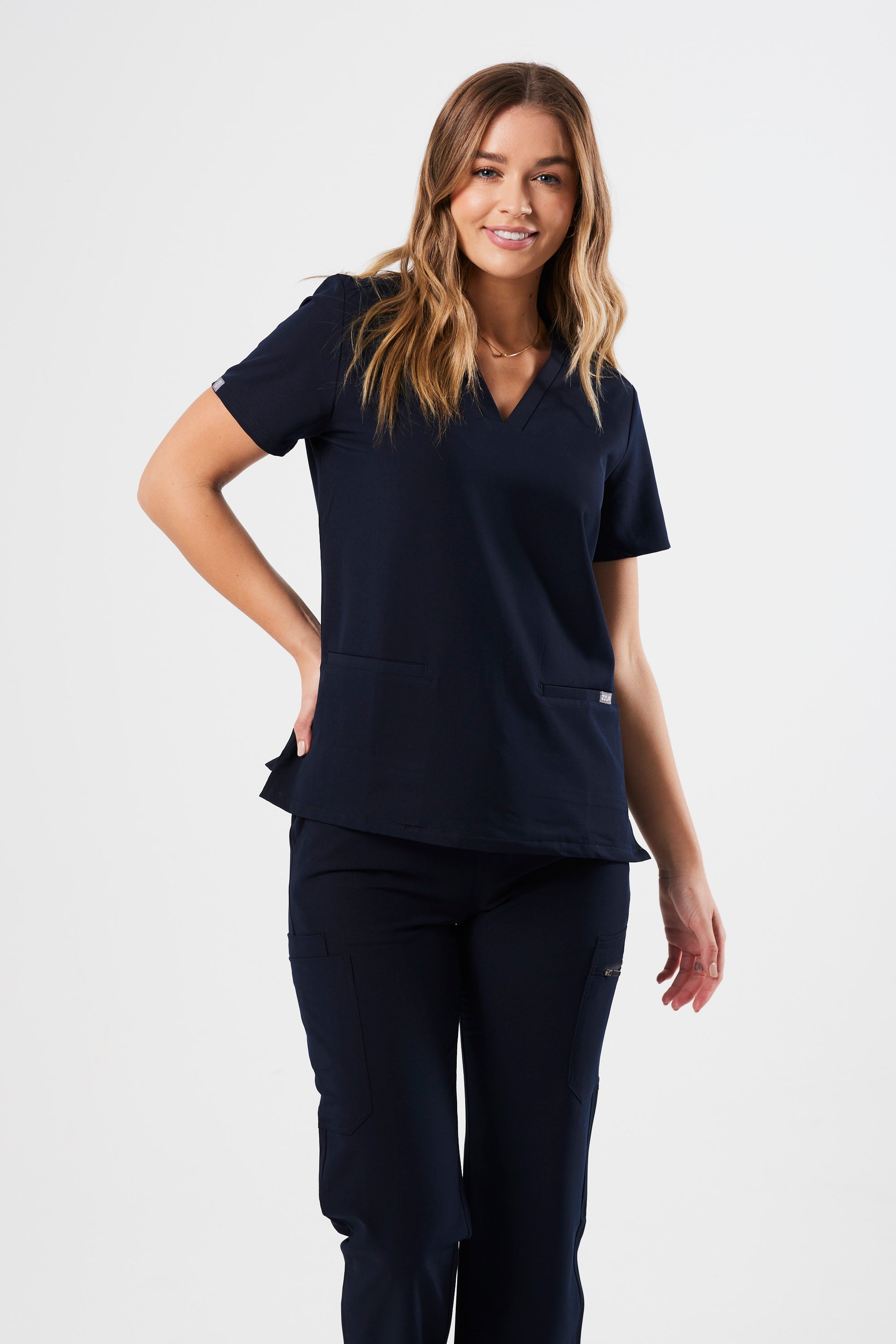 CLASSIC TWO-POCKET WOMEN'S SCRUB TOP (NAVY)
