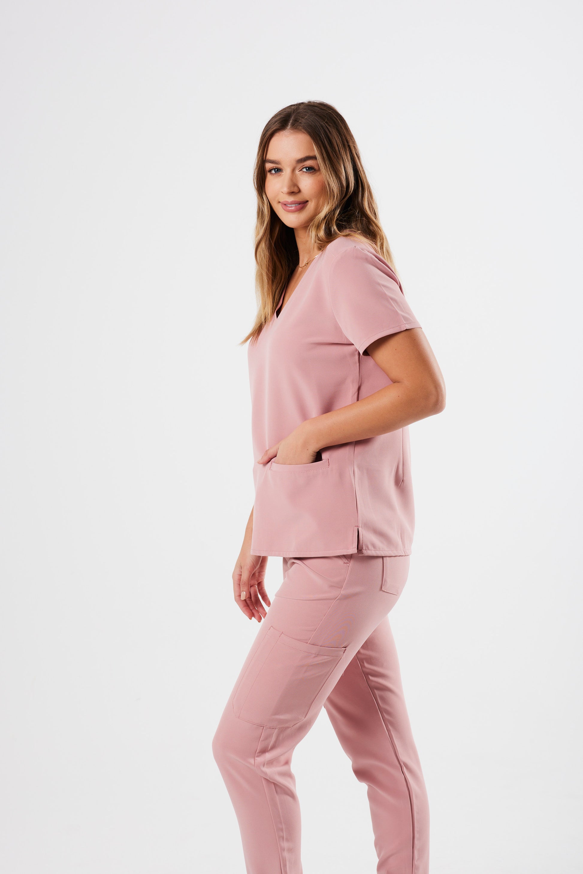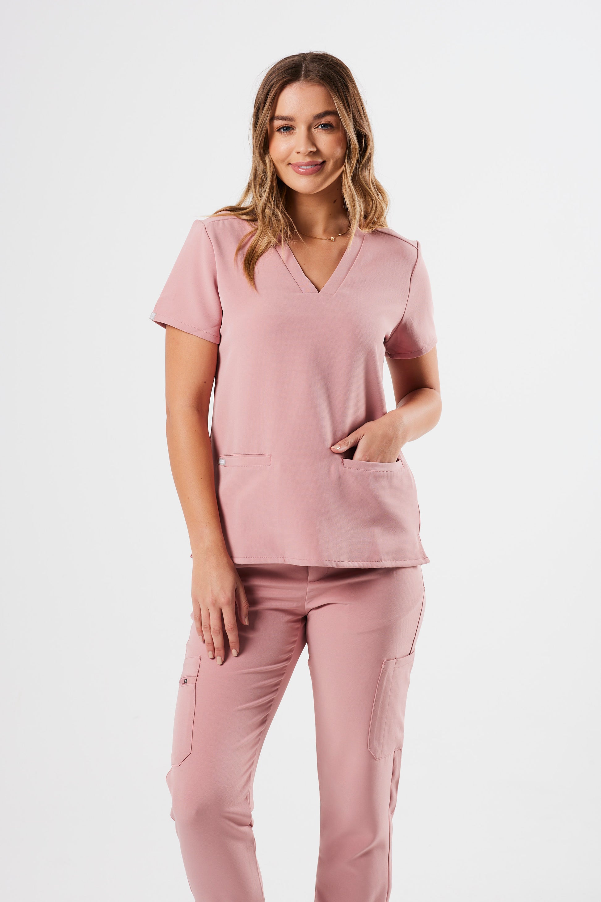 FLEX TWO-POCKET WOMEN'S SCRUB TOP (PINK PEONY)