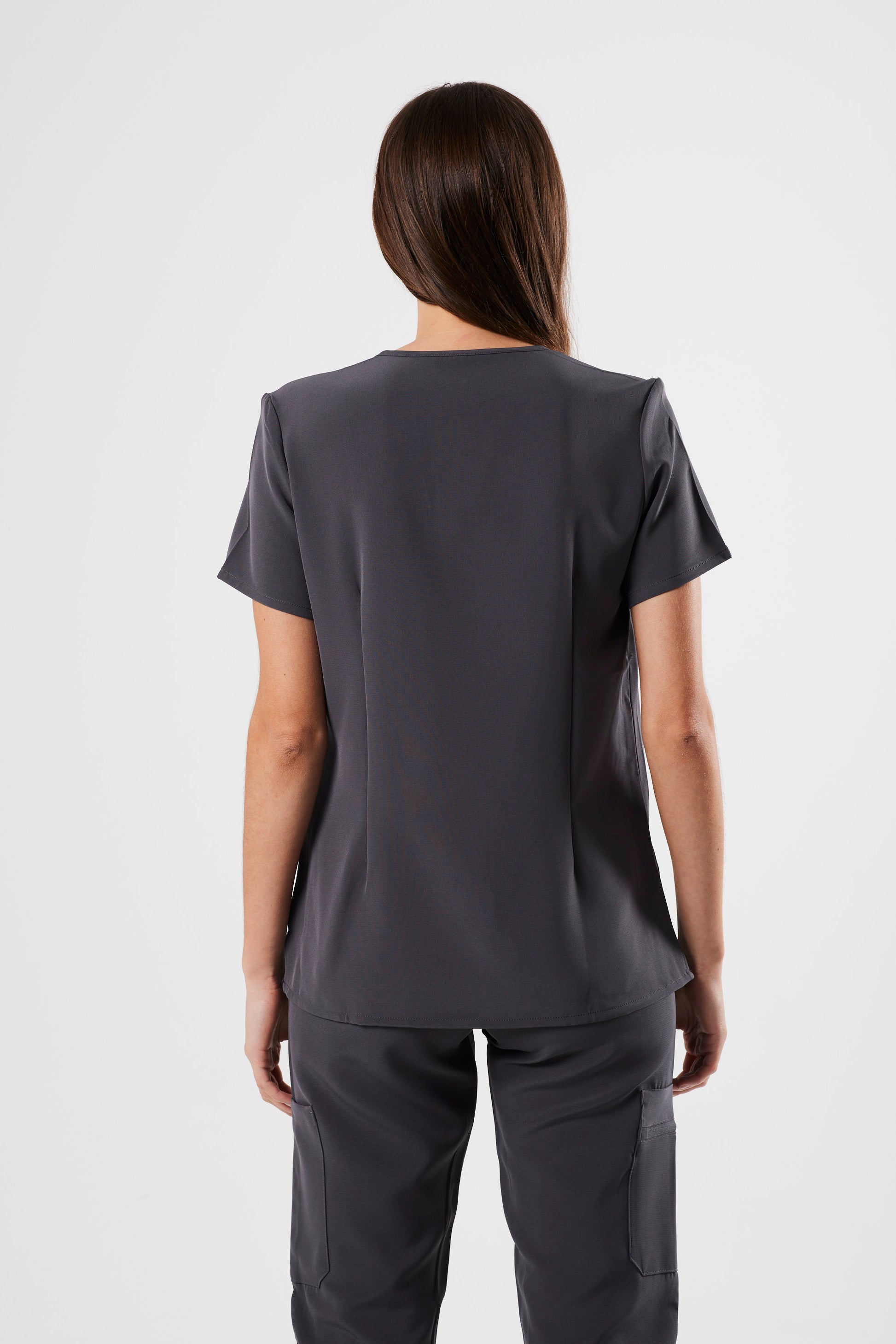 FLEX ONE-POCKET WOMEN'S SCRUB TOP (PEWTER GREY)